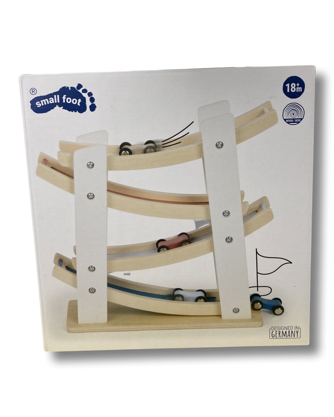 Includes four color wooden cars