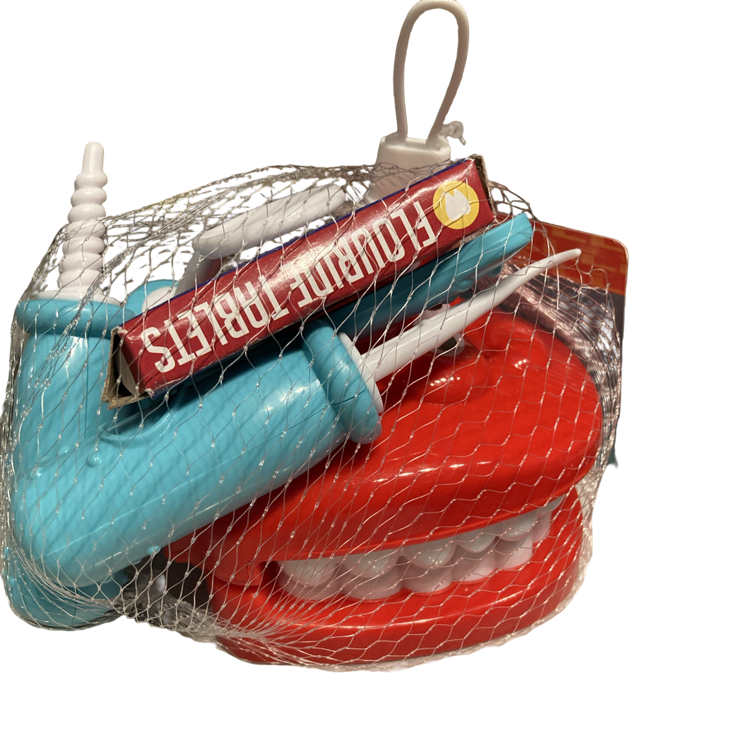 What a great learning activity Included: Set of Model Teeth Toothbrush Dental Pick Mirror Fluoride Tablet Box Not recommended for Children under 3 years of age